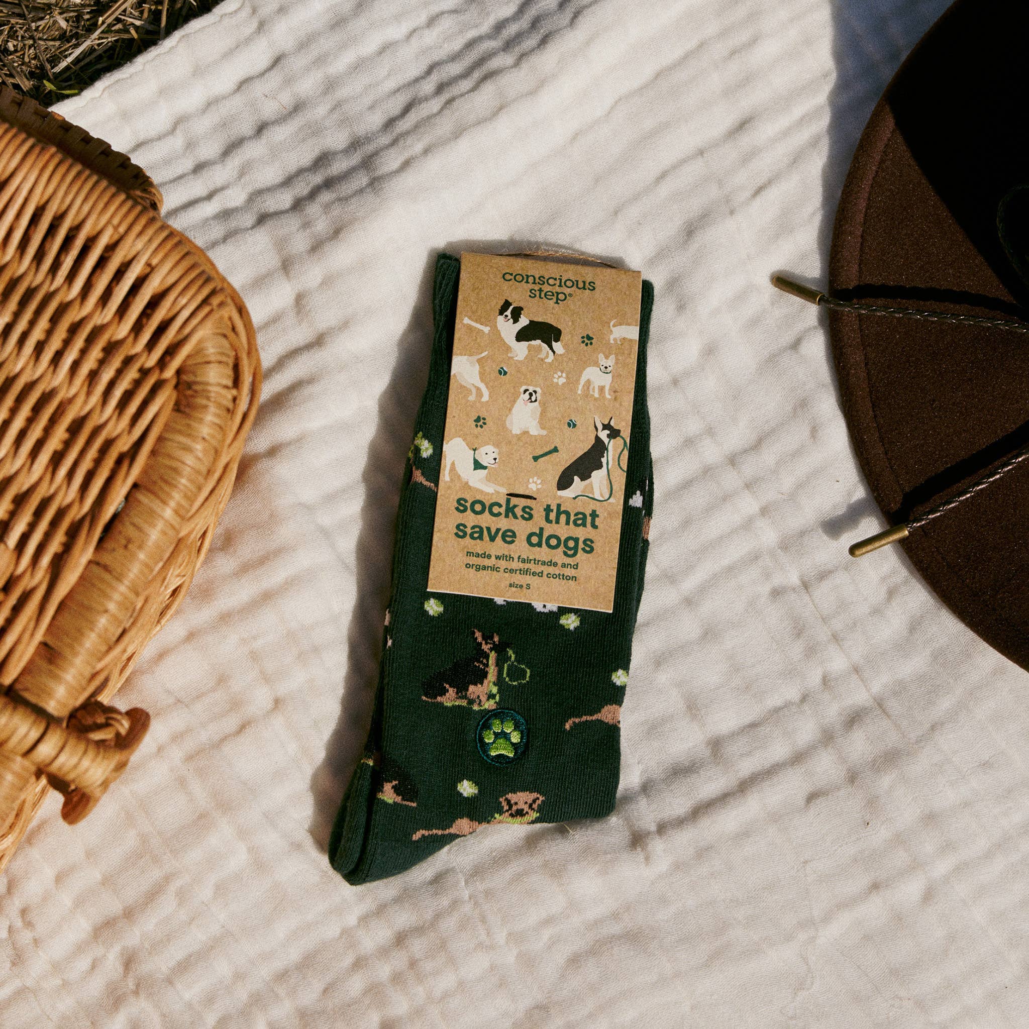 These socks are making fetch happen, and they might just fetch you some compliments, too. Get your paws on this doggone fun green pair featuring german shepherds, golden retrievers, and border collies and help make a pawsitive impact for dogs everywhere.